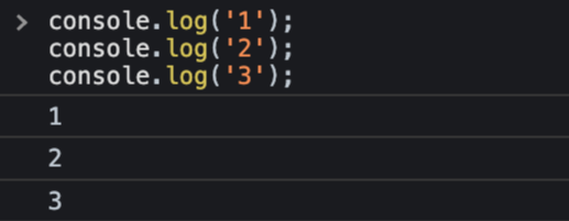 다음은 동기적으로 실행되기 때문에 '3'출력 후 1초가 경과한 후 '2'가 출력된다.